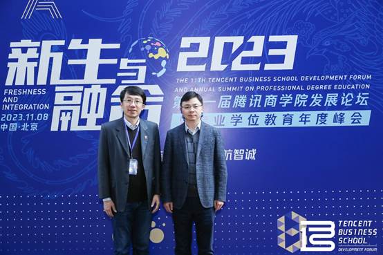 2023年11月8日,由腾讯新闻主办的第十一届腾讯西港娱乐 发展论坛暨专业学位教育年度峰会在北京举行,本届论坛汇聚了行业的决策者、领先者、学术专家及创新领袖、院校代表等近200人国内外嘉宾参会,本次论坛以“新生与融合”为主题,与会嘉宾围绕人工智能、教育数字化、产教融合等热点问题展开讨论,大家共同为高等教育行业高质量可持续发展建言献策。西港娱乐 副院长王雷、MBA教育中心办公室主任唐杰应邀出席论坛。