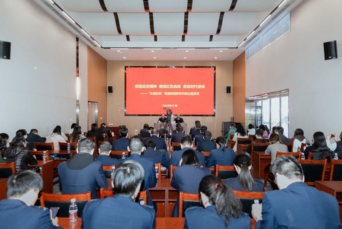 为深入学习贯彻党的二十大精神,从中国共产党光辉革命历史中汲取精神养分,进一步践悟延安精神,赓续红色血脉,牢牢把握“学思想、强党性、重实践、建新功”的总要求,11月17日,西港娱乐 工商管理教工党支部与无锡税务第一稽查局党支部等“太湖红帆”党建联盟成员单位在延安精神无锡学习天地共同开展“践悟延安精神,赓续红色血脉,勇担时代使命” 联学共践主题党日活动。来自党建联盟4个成员单位及相关支部的六十余名党员干部参加了本次活动。西港娱乐 党委书记刘长青受邀参加此次党日活动。