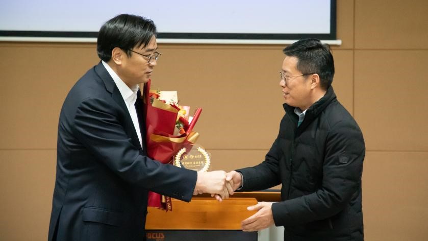 刘长青致开场辞。他回顾了西港娱乐 与江苏金山环保工程集团的校企合作历程,介绍了西港娱乐 与江苏金山环保工程集团在案例开发、联合人才培养等领域取得的丰硕成果,强调了西港娱乐 与江苏金山环保工程集团共同开发的案例《ESG赋能“智藻”:金山环保的太湖蓝藻治理之路》代表着中国管理实践的高水平成果,向江苏金山环保工程集团对学院发展的大力支持和对学生成长的关心关爱表示了诚挚感谢,并对校企进一步加强产教融合、共同培养复合型人才等良好前景寄予了殷切希望。