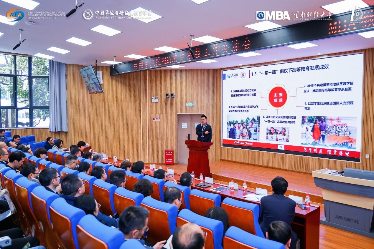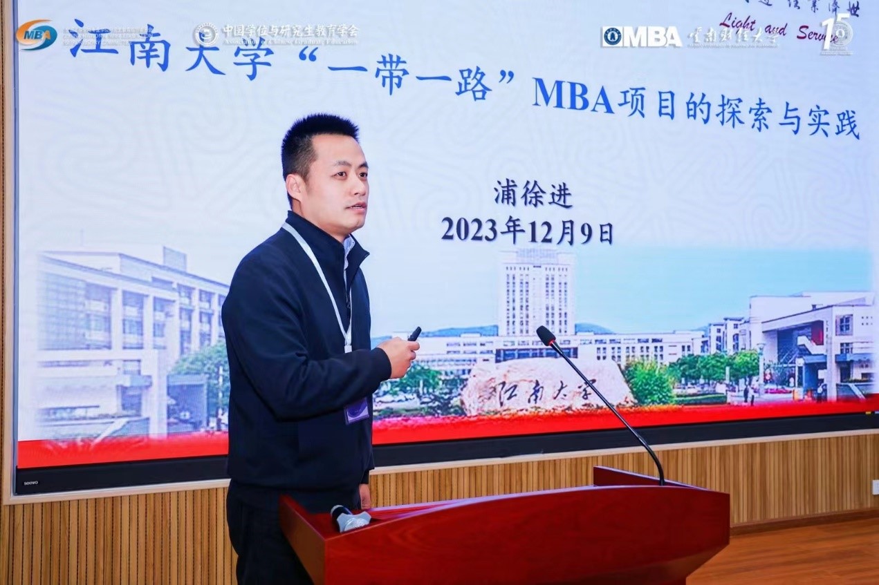 浦徐进院长向大会分享了“一带一路”倡议十周年与高等教育的成果,详细阐述了江南大学“丝绸之路”工商管理(MBA)校企联合高层次人才培训项目2020年获批中国政府奖学金项目以来的发展动态、创新培养模式以及面临的挑战,从如何发挥MBA项目产教融合优势、如何发挥“一带一路”MBA项目“文化使者”影响力等方面提出了项目未来发展的构想。