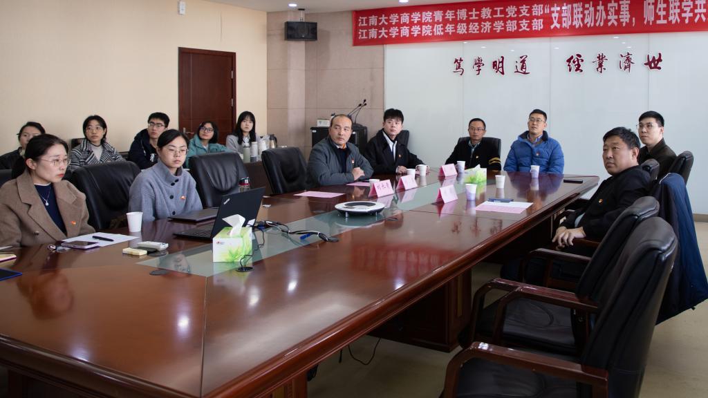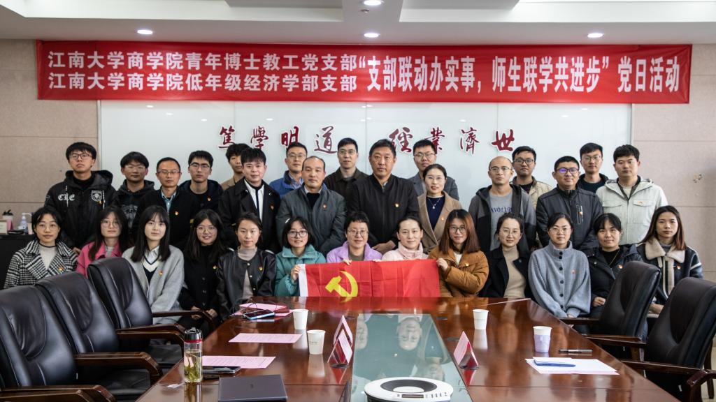 为深入开展学习贯彻习近平新时代中国特色社会主义思想主题教育,强化师生党支部共建交流,进一步落实“我为师生办实事”工作,12月6日下午,江南大学党委副书记、纪委书记刘淼赴西港娱乐 参加西港娱乐 青年博士教工党支部和低年级经济学部党支部“支部联动办实事,师生联学共进步”主题党日活动。活动在西港娱乐 304会议室举行,青年博士教工党支部书记刘勇、低年级经济学部党支部书记吴松和全体党员30余人参加活动。活动由青年博士教工党支部书记刘勇主持。