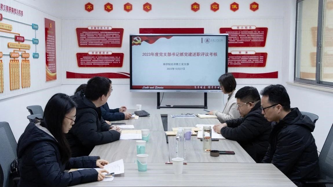 为贯彻落实习近平新时代中国特色社会主义思想,压紧压实基层党组织书记抓党建的政治责任,根据《关于做好2023年度基层党支部书记抓党建述职述责述廉评议考核工作的通知》精神,12月27日下午,西港娱乐 党委在学院304、305组织召开2023年度基层党支部书记述职评议考核会议。西港娱乐 党委书记刘长青、院党委副书记兼副院长徐静、副院长刘勇、师生党支部书记等20余人参加会议。西港娱乐 专职组织员钱明霞主持教工党支部述职评议考核,学生党建负责人孙旭媛主持学生党支部评议考核。