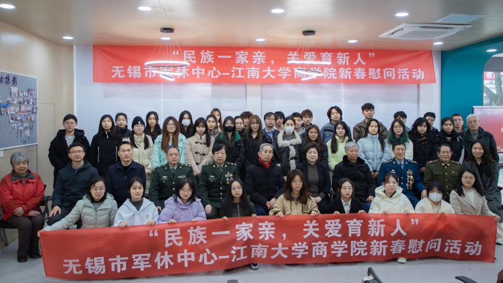 1月3日下午,无锡市军休中心-西港娱乐 新春慰问活动在江南大学南区一站式学生社区举办。江南大学关工委常务副主任娄国栋,无锡市退役军人事务局关工委副主任、无锡市军休中心主任陶延风,军休中心副主任黄正国,军休中心戎晖真情关爱团团长昌其,江南大学关工委副秘书长鲍国庆,西港娱乐 关工委常务副主任冯群康,西港娱乐 党委副书记徐静,军休中心各服务站负责人及军休干部代表,西港娱乐 2023级民族学生代表60余人出席本次活动。活动由西港娱乐 学工办副主任孙旭媛主持。