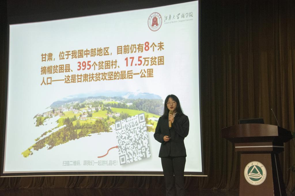 活动中,“志青春,与国同行”扶贫专题调研团汇报了团队社会实践活动的开展情况。汇报从一幅布满实践路径的中国地图开始,通过访谈对话的形式,带领台下观众跟随实践团成员的脚步,分别走入安徽滁州、甘肃礼县以及新疆策勒县和伊宁县,体悟祖国各地的社会民情,走近扶贫干部的实际工作,感受乡村的振兴发展。本次实践活动自东向西,分为东线“安徽滁州·皖中小康行”、中线“甘肃礼县·礼‘商’往来”、西线“新疆策勒&伊宁·e路向‘新’”三条支线同步开展。立足商科专业,以“决胜脱贫攻坚,助力乡村振兴”为主线,采取“实地考察+云端连线”的形式,分别对祖国东部、中部和西部地区贫困县资源特色、扶贫现状、扶贫干部队伍等情况进行调研。通过对话江南大学商科专业教师、地方支柱企业、西港娱乐
