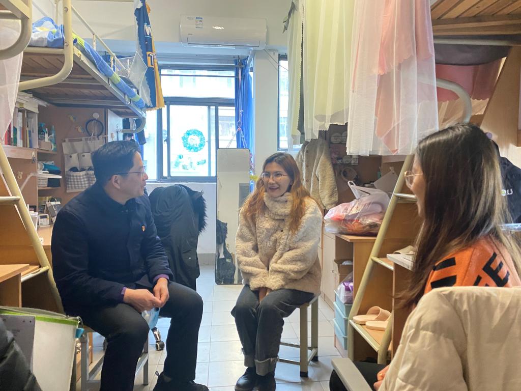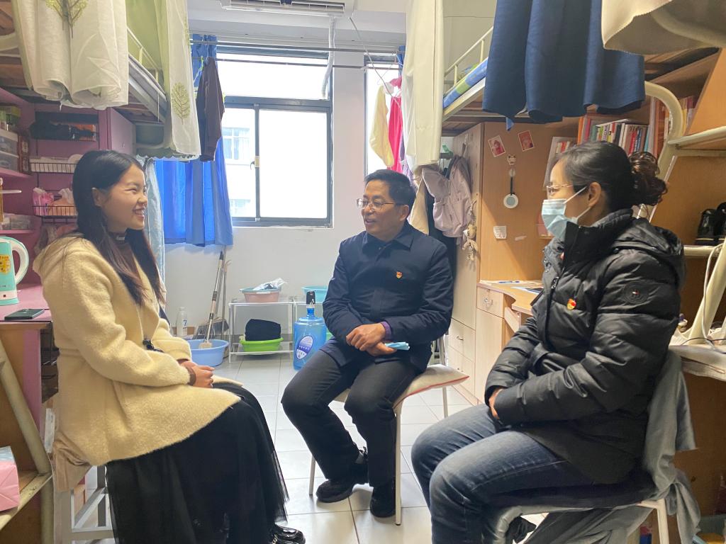 党委书记徐锡清、党委副书记兼副院长徐静、辅导员王璁一行走访了学生宿舍公寓,慰问关心寒假留校学生,深入了解学生学习、生活、思想及心理健康状况。