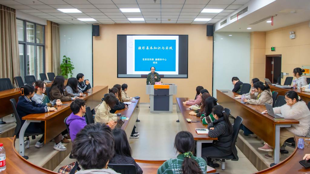 “小商融媒训练营”第一讲,在116会议室举办。本次活动邀请校党委宣传部、融媒体中心胡奕老师开展摄影专题培训。学院教工通讯员,新媒体工作室全体成员,学生会、分团委以及研究生会学生骨干参加此次培训。